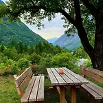 Diese Villa bietet einen Blick auf die Berge. Diese Unterkunft in Soča verfügt über ein Badezimmer mit einem Bidet, einer getrennten Toilette und einer Dusche. Ein Haartrockner und Badelaken sorgen für zusätzlichen Komfort.